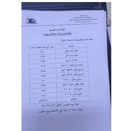 علي الجانب نفسه اشار اللواء الدكتور علاء ناجي رئيس الشركة القابضة ان المعرض سيشهد بداية من غدا الخميس عرض اسماك مغلفة وجمبري فاخر” جامبو” وفسيخ ويؤدين انتاج كفر الشيخ وروحة ماركة عالمية وفواكه البحر وطيور السمان والبط اضافة للحوم والدراج وبيض المائدة بأسعار تقل عن السوق المحلي بأكثر من خمسين / من سعرها تأكيدًا ودعما للسادة الصحفيين